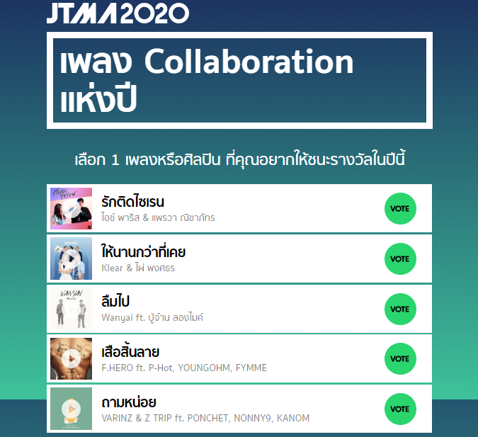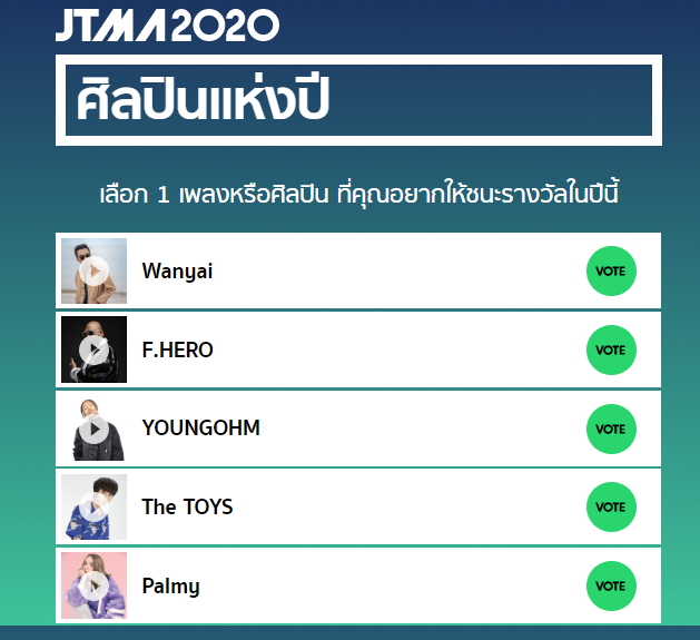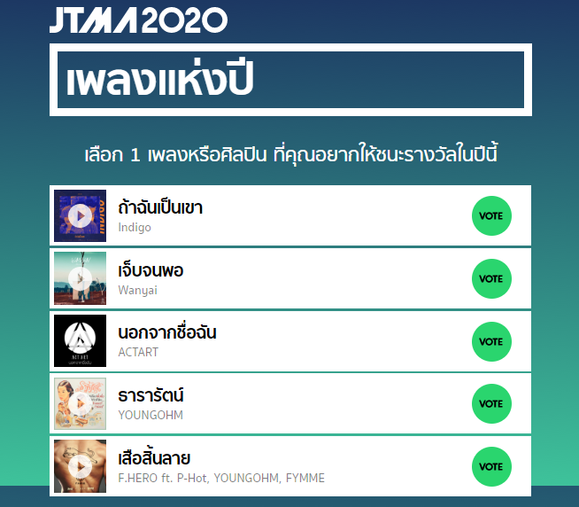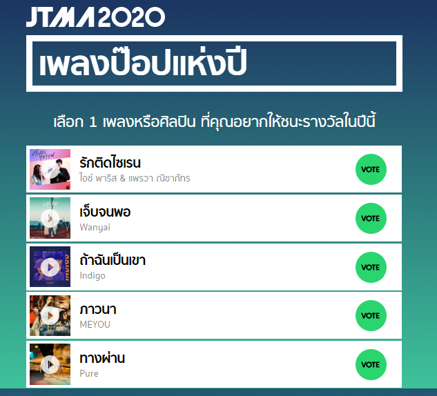 ร่วมโหวตรางวัล JOOX Thailand Music Awards 2020