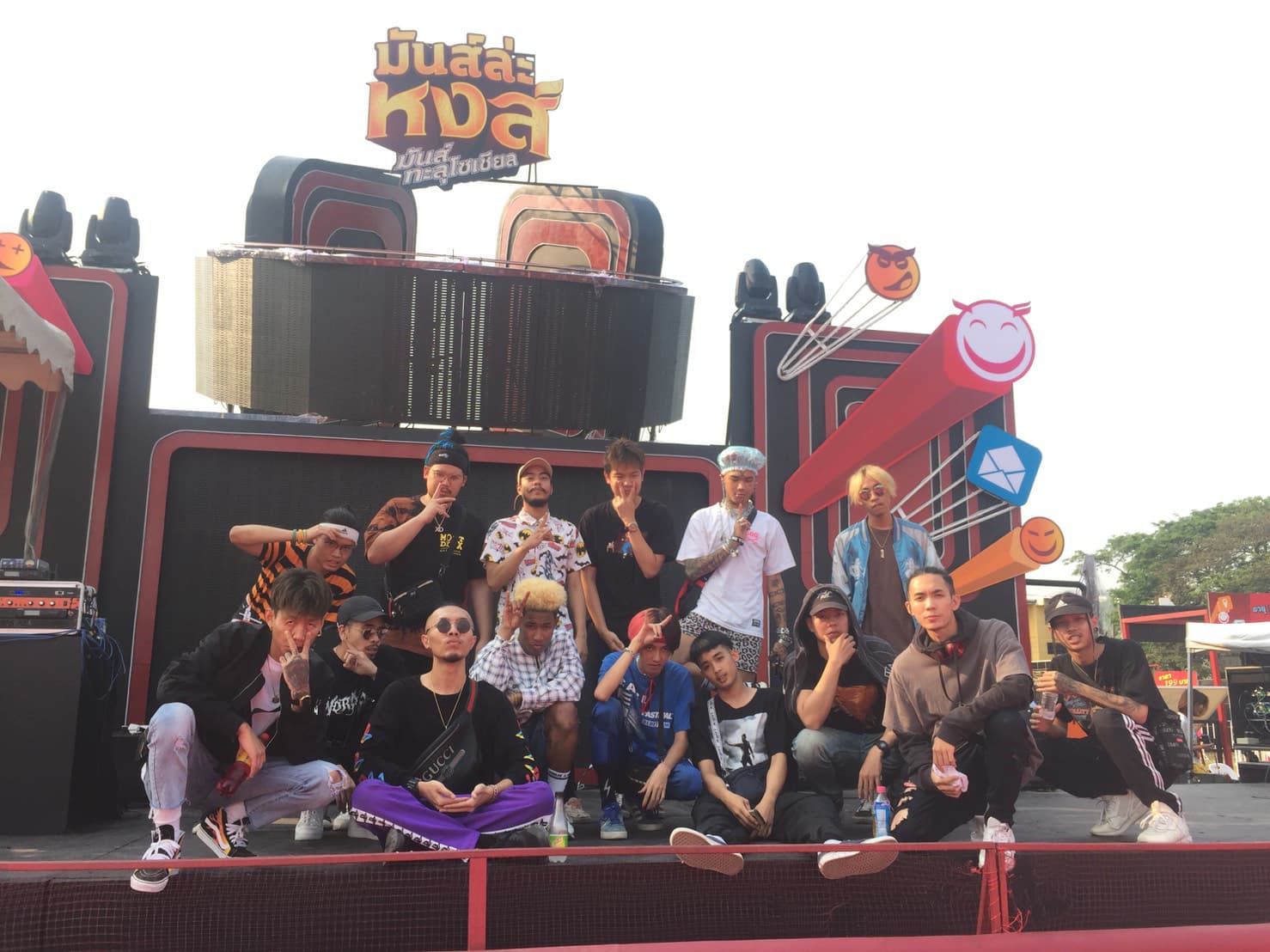 Sweeny : ตอนนี้มี 7-8 คนครับ ทำงานบ้าง ทำเพลงก็เหลือไม่ค่อยมากแล้ว เหลือสักประมาณ 3-4 คน หลักๆ นอกจากผมก็มี Sunnybone, A2 ส่วน HN นี่ก็ทำบ้างไม่ทำบ้าง เพราะต้องตัดผมครับ เค้าทำรายได้จากร้านตัดผมอยู่ตอนนี้ แล้วก็มีเด็กที่เพึ่งเข้ามาใหม่ มี G-Flex กับ Lil Slum สองคนนี้เพึ่งหัดแร็พเมื่อปีก่อน